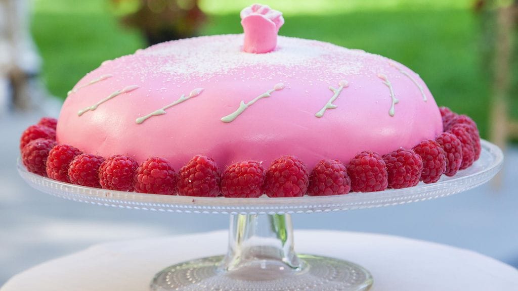 Pohja: Vaahdota munat ja sokeri vaaleaksi vaahdoksi. Lisää jauhot sekaan siivilän läpi varovasti käännellen. Laita vuokasprayta 20cm PME-/irtopohjavuokaan ja kaada taikina vuokaan. Kopauta muutaman kerran pöytään, jotta ilmakuplat häviävät. Paista uunin alatasolla 175° noin 40 minuuttia. Varmista kypsyys kakkutikulla. Anna jäähtyä hetken ja kumoa pohja leivinpaperin päälle jäähtymään. Leikkaa jäähtynyt pohja kolmeen osaan.