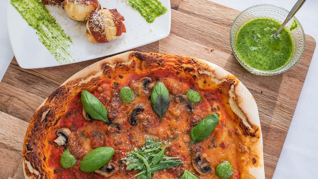 POHJA: Sekoita jauhat ja n. ¾ osaa vedestä. Liuota suola loppuun veteen ja lisää taikinaan. Lisää lopuksi öljy. Vaivaa taikinaa vähintään 10 minuuttia. Nosta vaivattu taikina kevyesti öljyttyyn kulhoon. Sulje kelmulla. Kohota taikinaa huoneenlämmössä mielellään useampi tunti.