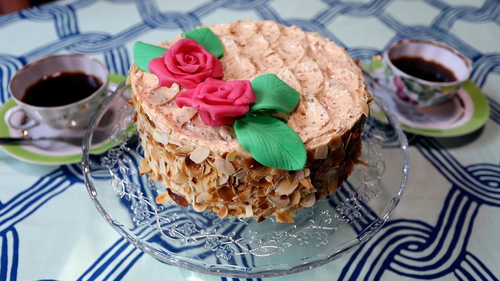 OHJE: Vatkaa valkuaiset ja suola kovaksi vaahdoksi. Sekoita tomusokeri ja mantelijauhe keskenään ja lisää varovasti valkuaisvaahdon joukkoon. Levitä marenki leivinpaperin päälle kuudeksi, halkaisijaltaan noin 18 cm:n kokoiseksi ympyräksi. Paista marenkipohjat 120 - 160 asteisessa uunissa. Irrota varovasti.