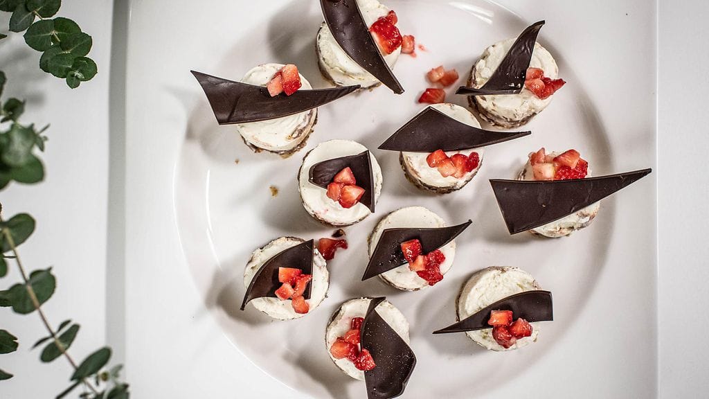 KEKSIPOHJAN VALMISTUS: Sekoita kaikki kuivat aineet keskenään. Lisää sekaan sulatettu voi ja viimeiseksi kananmuna. Asettele leivinpaperilliselle pellille taikinanokareita. Paista 200 asteisessa uunissa n. 8 minuuttia. Murenna jäähtyneet keksit ja lisää joukkoon sulatettu voi. Painele keksimassa 10 pienen 5cm x 7cm kokoisten vuokien pohjalle. Laita pakastimeen jähmettymään.