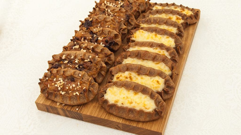 Paista 250 asteisessa uunissa, kunnes pinta on kauniin ruskea. Voitele paiston jälkeen piirakat sulatetulla voilla.