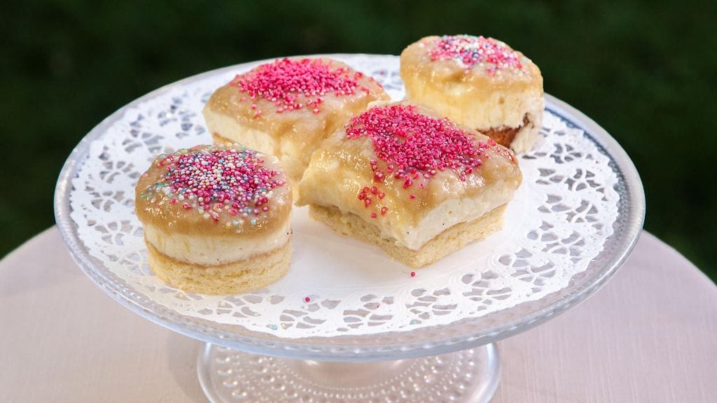1.Voitele irtopohjallisen vuoan pohja ja lisää hieman korppujauhoja pohjalle myöskin. Vatkaa kananmunat ja sokeri kulhossa kuohkeaksi vaahdoksi. Lisää jauhot vähitellen nostelemalla taikinaa hieman. Levitä taikina vuoan pohjalle ja paista uunissa 175 asteessa 20 min. Välillä tarkista kypsyys.