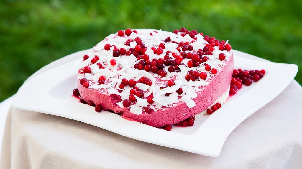 3. Valmista täyte. Sulata ensin kookosöljy vesihauteessa ja laita joukkoon hunaja. Hienonna tehosekoittimella tai sauvasekoittimella puolukat ja banaani. Lisää kookosöljy ja hunaja joukkoon ja hurauta koko seos tasaiseksi.