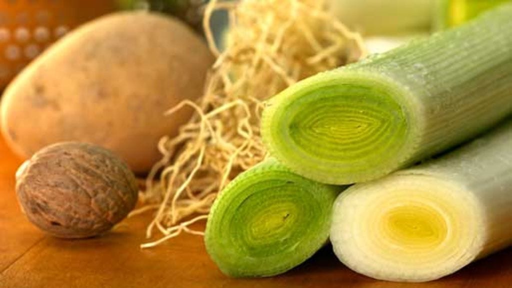 2. Timbaali: Kuori, suikaloi ja huuhdo peruna, valuta pois ylimääräinen vesi. Puhdista, huuhdo ja suikaloi purjo. Ruskista peruna kuumalla pannulla, lisää purjo ja paista vielä muutama minuutti. Mausta suolalla ja pippurilla, täytä neljä voideltua annosvuokaa sekoituksella. Pidä vuoat lämpiminä ja kumoa timbaalit juuri ennen tarjoilua.