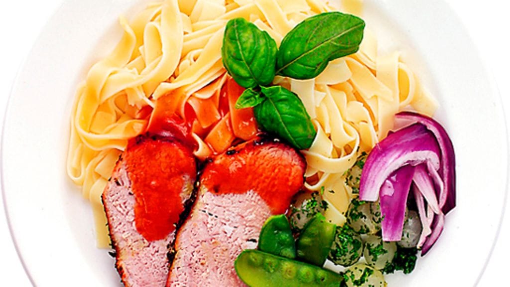 1. Liha: Kuumenna uuni 175 asteeseen. Ruskista filee paistinpannulla kauttaaltaan ja nosta voideltuun uuninkestävään vuokaan. Jatka kypsentämistä uunissa noin tunti, kunnes liha sisälämpötila on 80 astetta. Ota liha uunista, kääri alumiinifolioon ja jätä vetäytymän 10 minuutiksi. Leikkaa ohuiksi viipaleiksi.