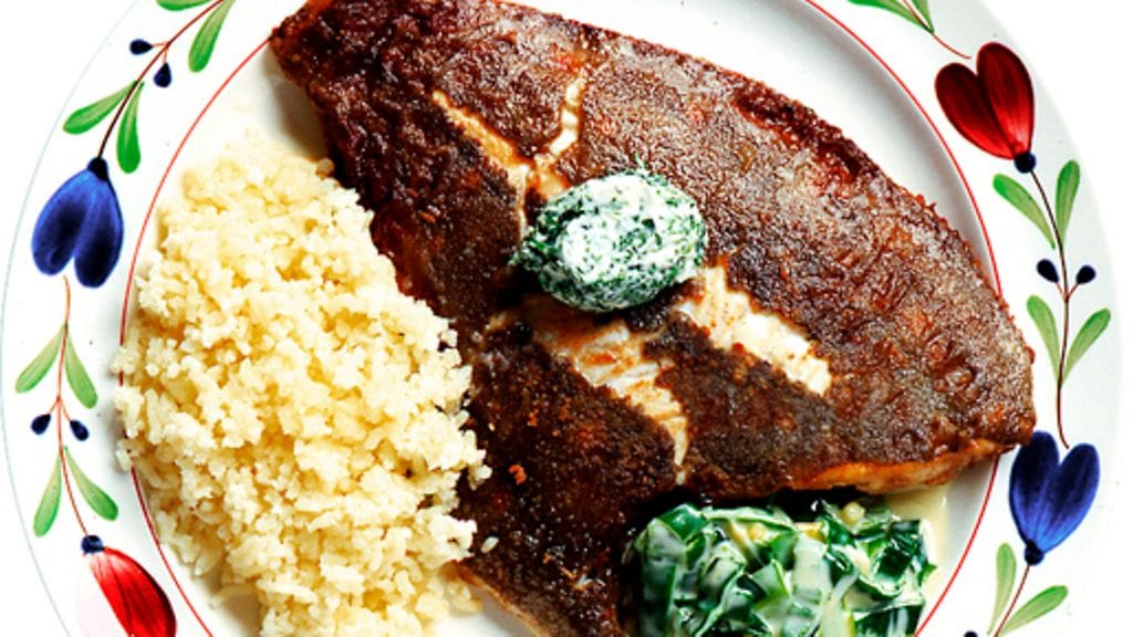 3. Paneroi kalat jauhoissa ja suolassa. Paista keskilämpimällä pannulla n. 15 minuuttia, paksuudesta riippuen. Kokeile, että lihan paksuin kohta irtoaa ruodosta.