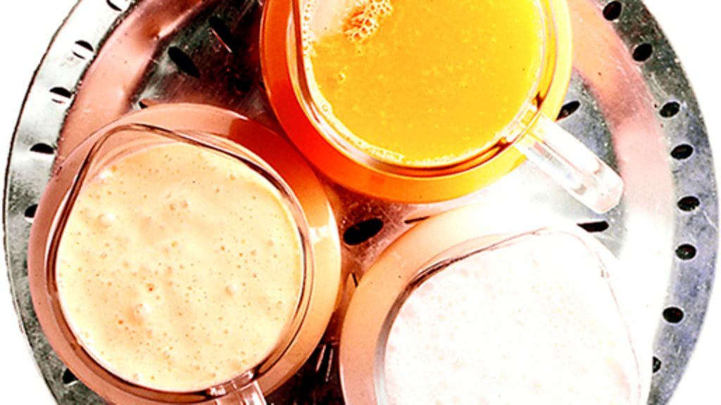 1. Lassi: Kaada jogurtti, maito ja jääpalat yleiskoneeseen tai tehosekoittimeen. Valitse, haluatko maustaa lassisi suolalla vai sokerille. Sekoita 20-20 sekunnin ajan, kaada kannuun ja tarjoa heti.