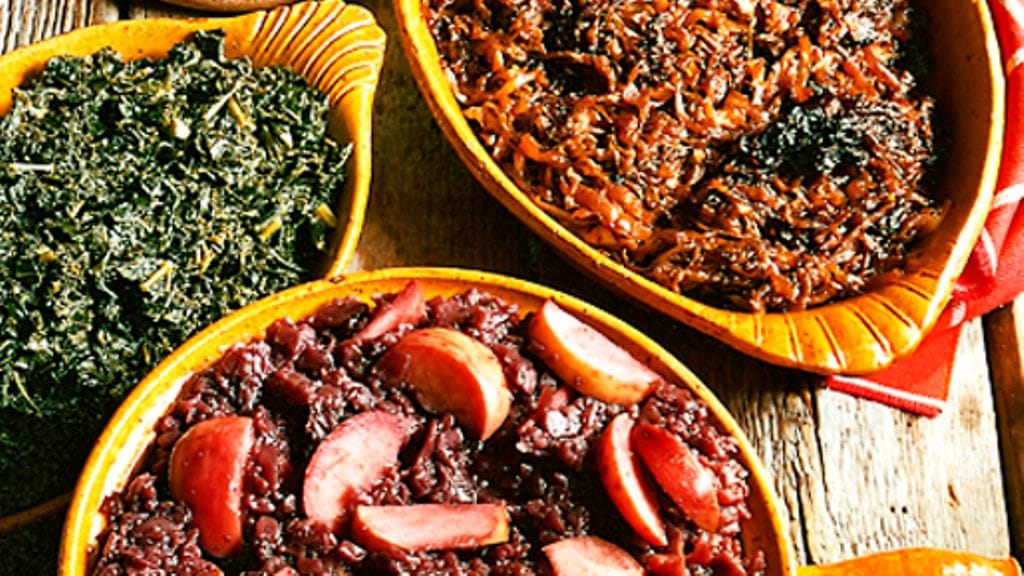 2. Pitkäkaali: Huuhdo kaali, irrota lehdet ja keitä niitä 5 minuuttia kinkun paistoliemessä. Nosta lehdet kattilasta ja hienonna ne. Paista kaalisilppua voissa padassa, lisää kerma ja mausta pippurilla. Keitä 5 minuuttia.