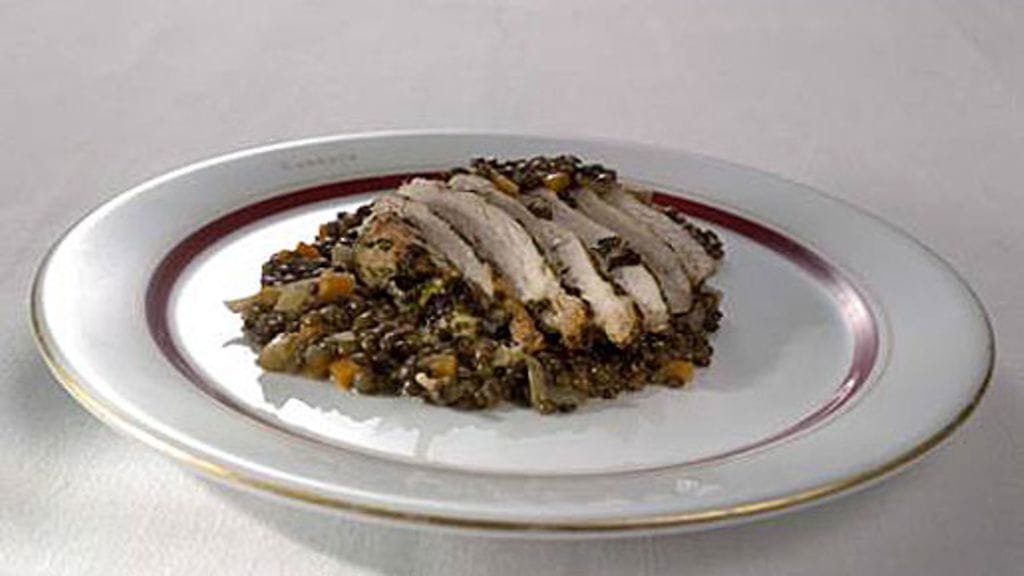 Mausta kananrintafileet suolalla, pippurilla ja hienonnetuilla yrteillä. Ruskista rintafileet pannulla öljyssä. Paahda fileitä tämän jälkeen 200 asteisessa uunissa noin 8-10 minuutin ajan, tai kunnes kana on kypsää. Tarjoile linssipadan kanssa.