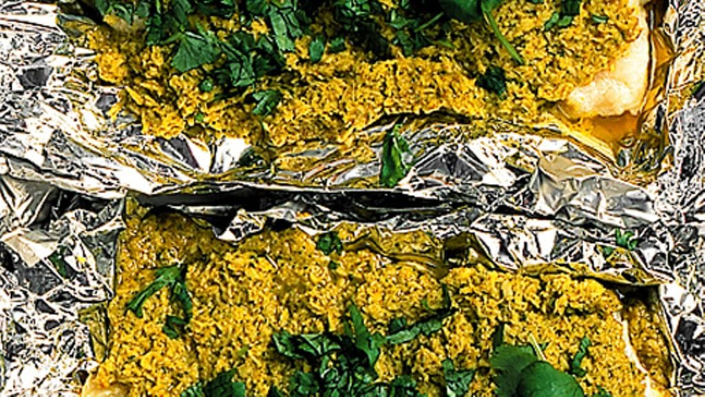 3. Voitele folio öljyllä. Levitä jokaiselle arkille ruokalusikallinen kookostahnaa ja aseta kala sen päälle. Levitä loppu tahna kalan päälle ja sulje folionyytit. Anna levätä 15 minuuttia. Keitä nyyttejä höyryssä 15 minuuttia. Tarjoile nyytit avattuina ja ripottele kalan päälle loppu korianteri.