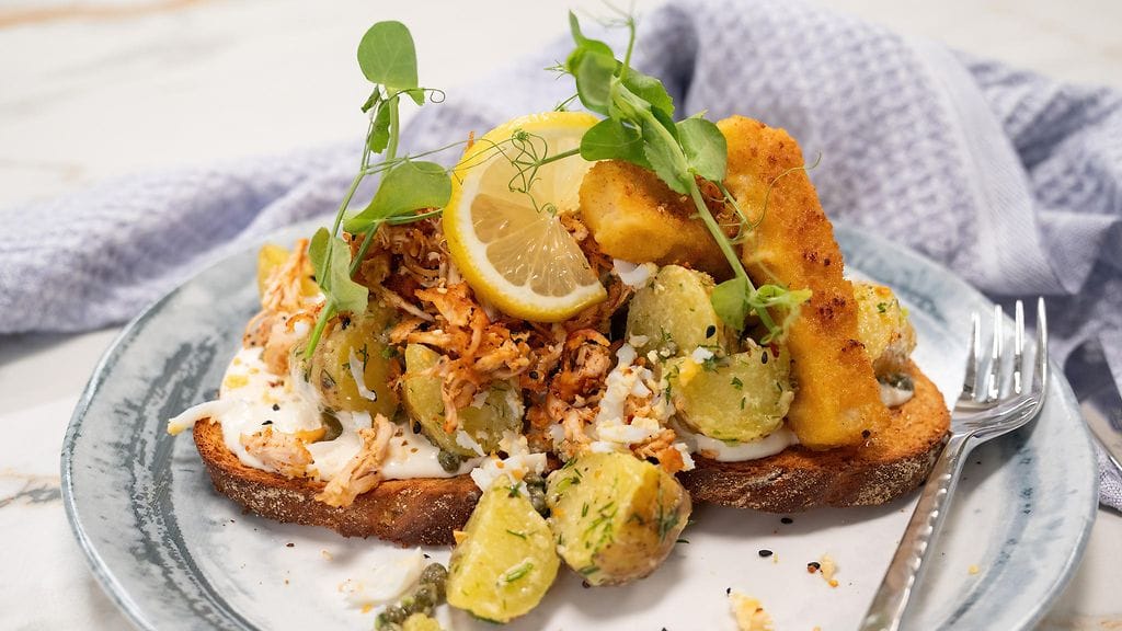 - Sekoita isossa kulhossa oliiviöljy, sitruunamehu, sinappi, suola, mustapippuri, tilli ja kaprikset. Kääntele joukkoon vielä hieman lämpimät paloitellut perunat. Jätä maustumaan.