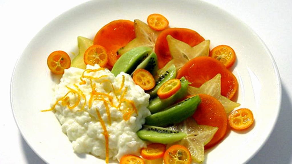 2. Huuhdo hedelmät ja leikkaa ne pieniksi paloiksi, tarjoile puuron kera. Koristele puuro hillotulla appelsiinilla tai ripauksella kanelia.