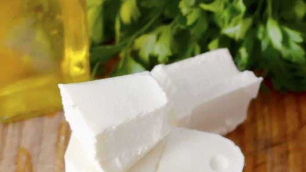 2. Sekoita vihannekset ja salaatinlehdet, lisää fetajuusto. Sekoita varovaisesti.