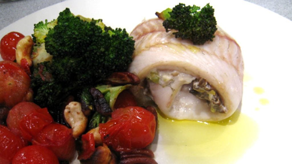 Nostele fileille sienitäytettä. Kääri fileet rullalle ja kiinnitä rullat cocktailtikulla. Nosta rullat uunivuokaan ja paista 175-asteisessa uunissa 15 – 20 minuuttia.