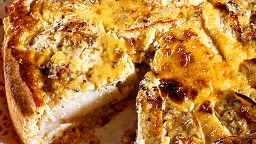 5. Paista uunin keskitasolla 30 minuuttia tai kunnes kreemi on jähmettynyt ja saanut väriä. Tarjoile haaleana, mielellään kahvin kera. Voit leipoa kakun etukäteen ja lämmittää sen ennen tarjoilua.