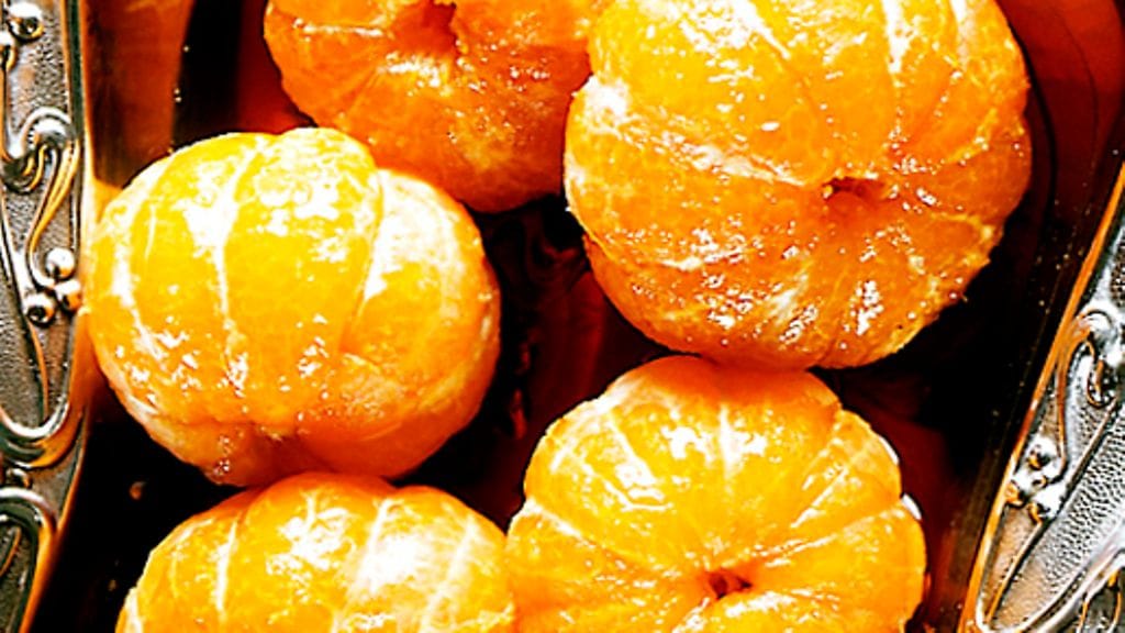 1. Sekoita kattilassa sokeri, vesi ja madeira ja kiehauta, niin että sokeri sulaa. Lisää kuoritut, kokonaiset mandariinit ja keitä hiljaa kannen alla 3-4 minuuttia. Käännä hedelmät pari kertaa.