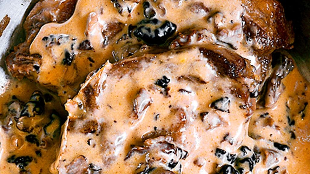 4. Nosta kyljykset padasta. Keitä kermaa kokoon kunnes kastike sakenee.