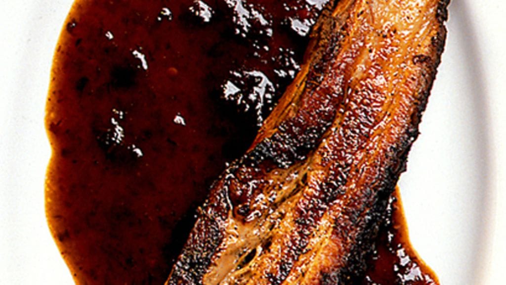 1. Kuori ja hienonna sipuli karkeasti, puhdista porkkana ja paloittele. Laita kylkipaisti kattilaan, lisää vettä niin että liha juuri peittyy, lisää vihannekset ja laakerinlehdet, maustepippurit ja mustapippurit sekä halutessasi hickoryöljy, ja keitä kannen alla n. 1 tunti tai kunnes liha alkaa irrota luista. Anna paistin jäähtyä liemessään kylmässä.