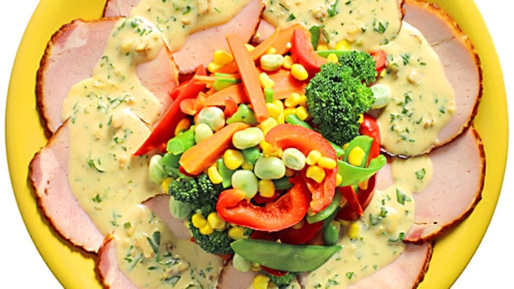 2. Viipaloi kassler ohuesti ja asettele viipaleet tarjoiluvadille, tarjoile kastikkeen kera.