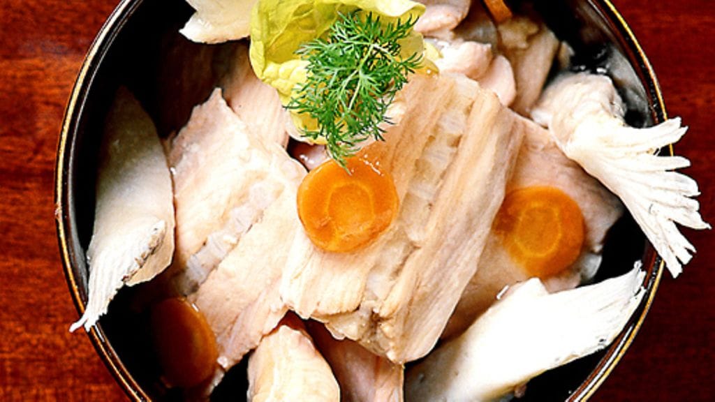 4. Nosta lohipalat liemestä heti kun ne ovat kypsiä, laita ne korkeareunaiselle vadille ja kaada liemi päälle. Koristele porkkanaviipalein. Anna lohen jäähtyä ja liemen jähmettyä kirkkaaksi hyytelöksi. Koristele pienellä tillinoksalla tarjoillessa.