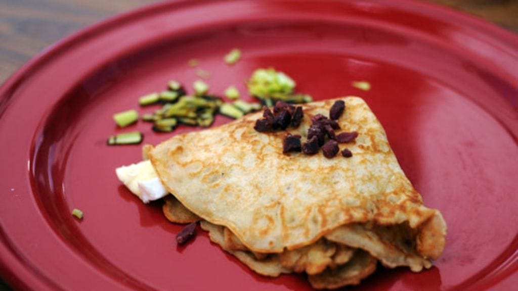 Sekoita lettutaikina maidosta, oluesta, kaurahiutaleista, vehnäjauhoista ja kananmunista. Mausta se suolalla ja sokerilla ja lisää tilkka öljyä paistamisen helpottamiseksi. Anna turvota vartti ja paista voissa suuria ohukaisia. Leikkaa savuporo ja brie paloiksi ja nosta täytettä lettujen päälle. Taita viuhkaksi ja lämmitä tarpeen mukaan grillissä.