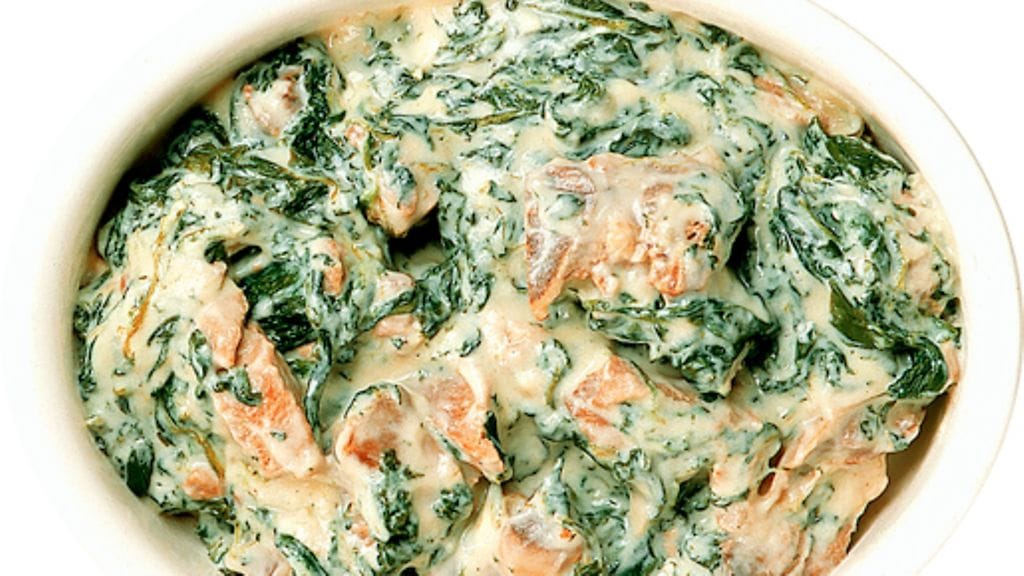 3. Keitä pinaatti pakkauksen ohjeiden mukaan. Purista sitruuna. Sekoita perunajauhot ja kaksinkertainen määrä vettä. Vatkaa sitten suurus ja munat kuohkeaksi seokseksi. Vatkaa seuraavaksi seokseen jogurtti ja puolet sitruunamehusta. Lisää lopuksi 1 dl keitinlientä kokoajan vatkaten.