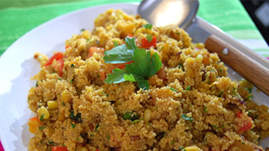 Lisää couscousiin vielä pieniksi kuutioitu tomaatti ja mausta suolalla. Sekoita seos tasaiseksi ja tarjoa persiljasilpulla koristeltuna joko lämpimänä lisukkeena tai kylmänä salaatin kera.