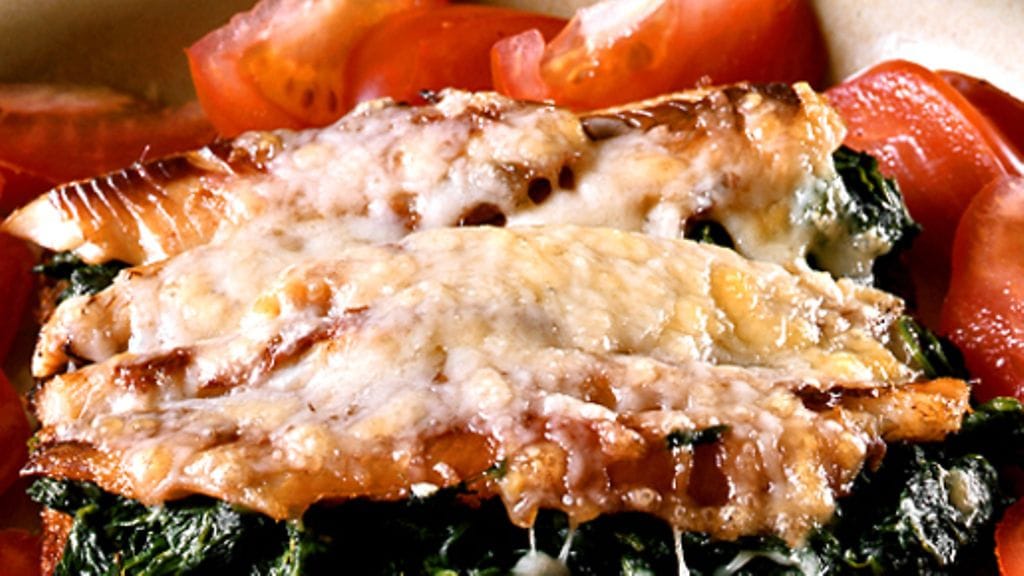 1. Kuumenna uuni 225 asteeseen. Sulata pinaatti kattilassa miedoimmalla lämmöllä. Mausta suolalla ja ripauksella muskottia. Voitele leivät ja laita ne pellille.