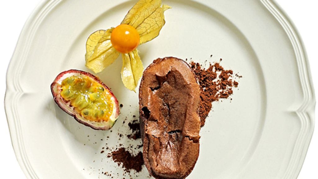 1. Voitele kuusi pientä vuokaa ja ripottele niihin kaakaojauhetta. Jäähdytä vuoat. Kuumenna uuni 160 asteeseen.