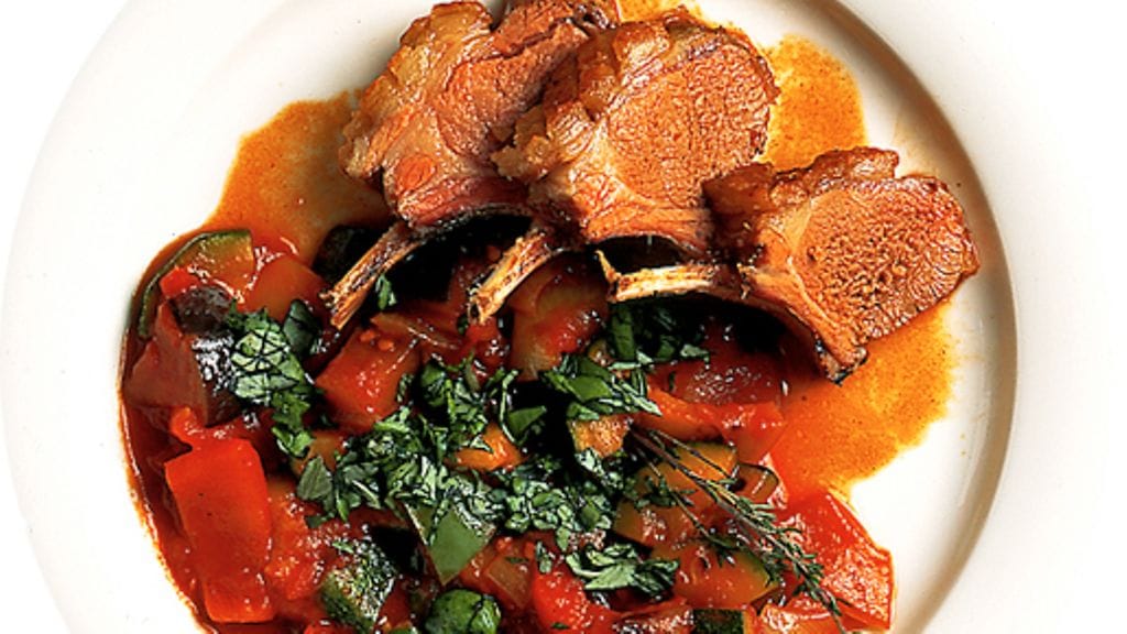 2. Ratatouille: Puhdista ja leikkaa kasvikset sokeripalan kokoisiksi kuutioiksi. Hienonna valkosipulinkynnet veitsellä karkeasti tai viipaloi ne. Kuullota vihanneksia erissä öljyssä pannulla ja siirrä ne isoon pataan tai kattilaan. Lisää tomaatit ja mausteet. Keitä ensin 10 minuuttia kansi päällä ja sitten vielä 20 minuuttia ilman kantta. Sekoita silloin tällöin.