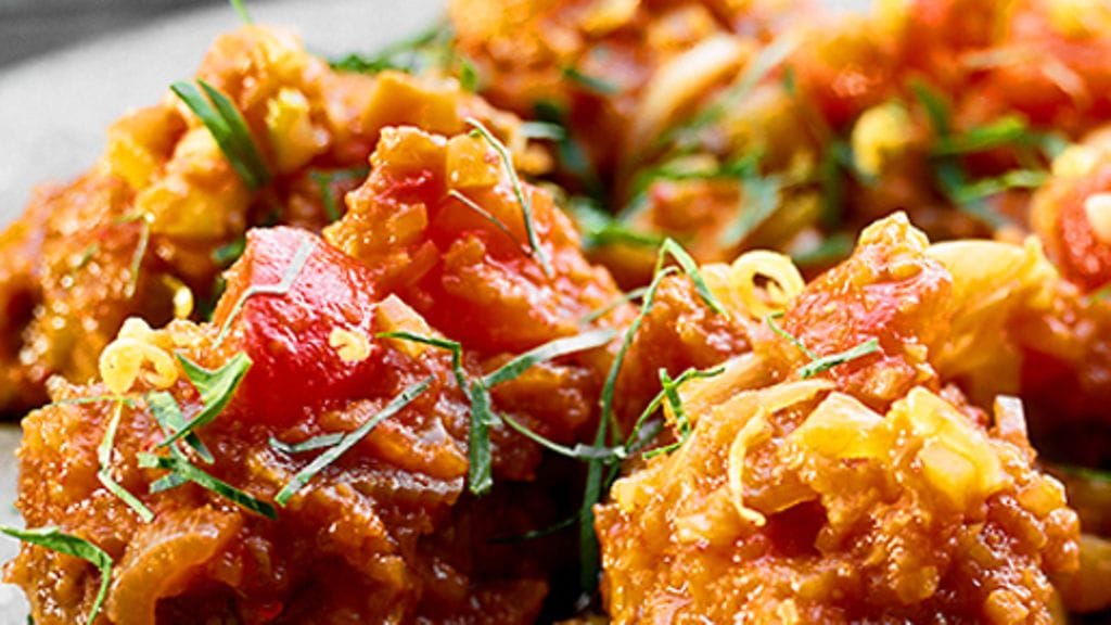 1. Kastike: Kuori ja hienonna sipuli karkeasti, paista oliiviöljyssä. Kaada päälle paseeratut tomaatit, suola, sitruunankuori ja persilja. Kuumenna kiehuvaksi ja anna hautua kannen alla 30 minuuttia.