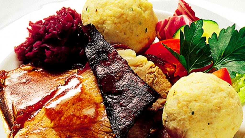 2. Knödel: Kuori ja hienonna sipuli ja persilja. Viipaloi leipä. Kuumenna maito ja kaada se leiville. Sulata voi, lisää sipuli ja persilja ja kaada seos kosteille leipäviipaleille. Riko munat ja lisää ne yksi kerrallaan, Mausta suolalla, pippurilla ja muskotilla ja sekoita. Anna levätä 30 minuuttia.