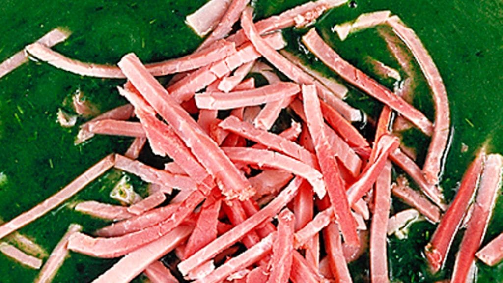 3. Lisää ruohosipuli. Tarjoile kuumana kinkkusuikaleiden kera.