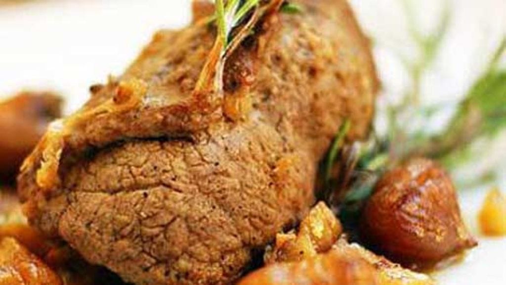 - Aseta 3-4 kpl kastanjoita kinkun päälle, mausta suolalla ja pippurilla.
