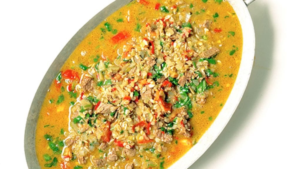 2. Kuumenna ruokaöljy padassa keskilämmölle. Ruskista lihaa 2-3 minuuttia kullanruskeaksi. Lisää sipuli ja paista 1-2 minuuttia. Lisää chili, tomaatti, suola ja vesi. Laita kansi päälle ja keitä 30 minuuttia tai kunnes liha on läpikypsää.