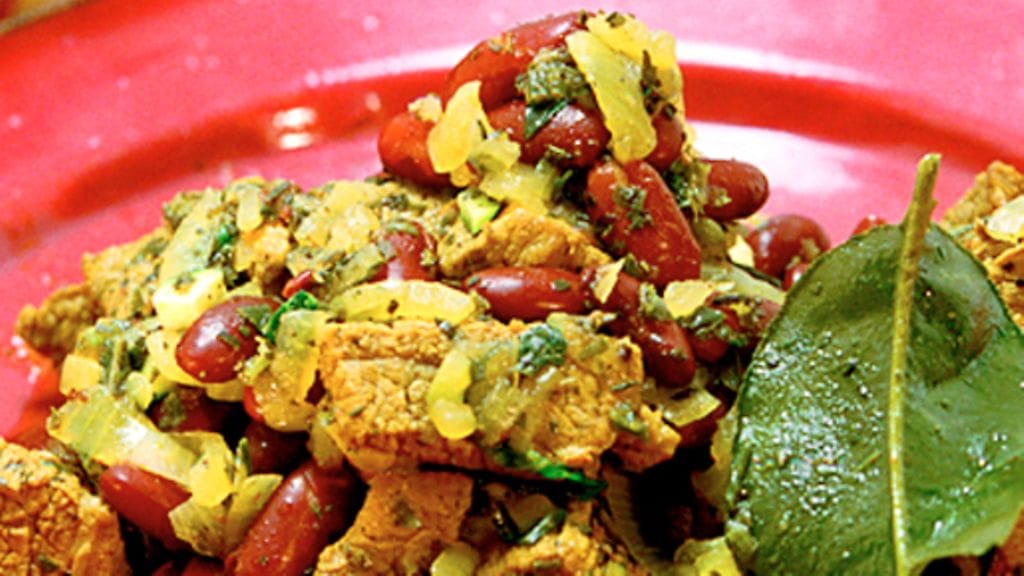 3. Laita seos pataan, kaada päälle vesi, laita päälle kansi ja anna padan poreilla miedolla lämmöllä n. 1 tunti. Lisää pavut ja anna kaiken kuumeta. Purista mukaan sitruunamehu juuri ennen tarjoilua.