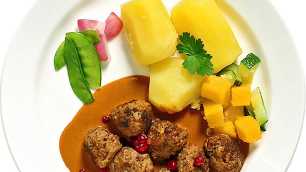 2. Sekoita suola ja muna jauhelihan joukkoon. Lisää sipuli, korppujauhoseos ja pippuri. Sekoita hyvin. Paista kokeeksi yksi lihapulla ja tarkista maku. Muotoile jauhelihataikinasta pyöreitä, noin 15 grammaa painavia pullia. Paista lihapullat paistinpannulla voissa niin, että ne muotoutuvat kauniin pyöreiksi.