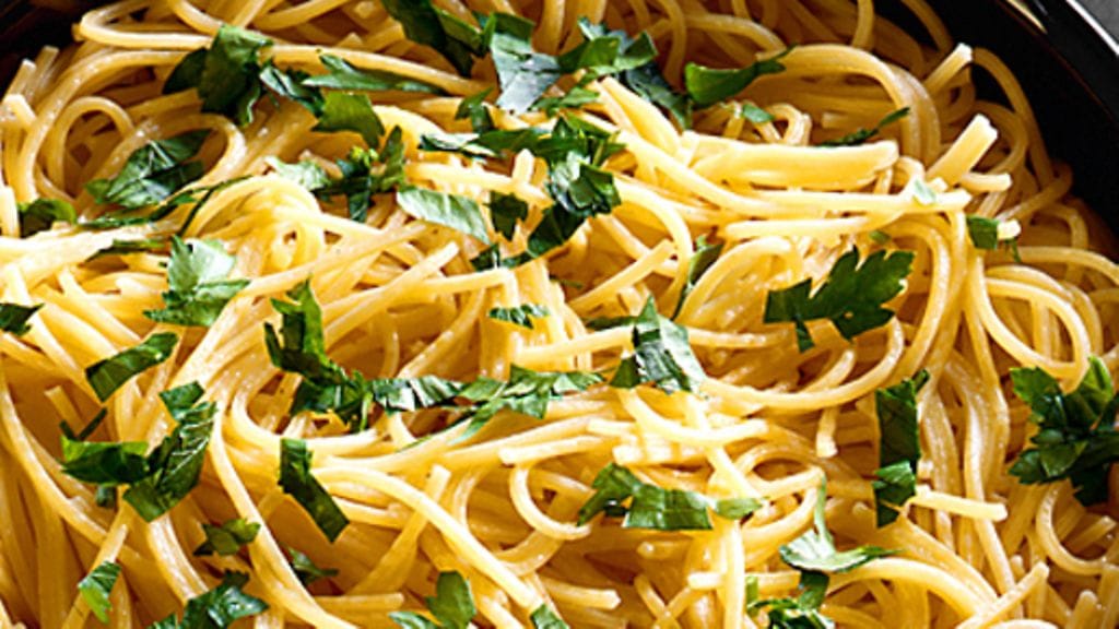 3. Sekoita vastakeitetty pasta pannuun, lisää sitruunankuori ja raastettua pecorinojuustoa.
