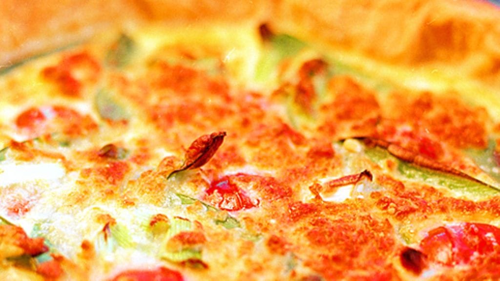2. Nosta uunin lämpötila 175 asteeseen. Kata pyöreä vuoka (läpimitaltaan noin 25 cm) voitaikinalla. Pistele pohja haarukalla ja esipaista pohjaa 15 minuuttia.