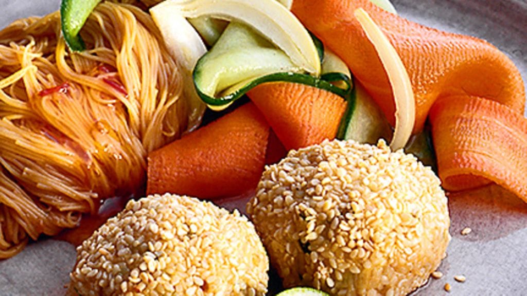 1. Lohikvenellit: Kuutioi lohi. Soseuta lohi, muna ja kerma monitoimikoneessa, mausta suolalla ja pippurilla. Muotoile pyöreiksi pulliksi, pyörittele ne seesaminsiemenissä ja keitä kevyesti suolatussa vedessä hiljalleen n. 5 minuuttia.