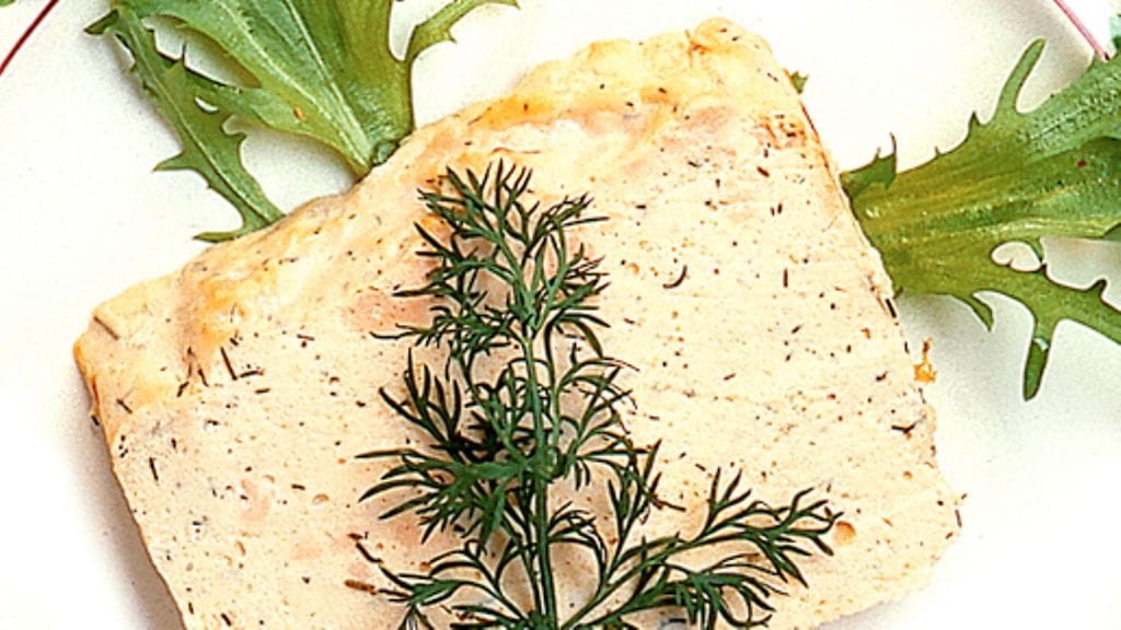 3. Laita vuoka vesihauteeseen ja anna paistua uunissa 1 tunti. Anna vuoan jäähtyä ja laita sitten jääkaappiin. Ota patee esiin hyvissä ajoin ennen tarjoilua, se maistuu parhaalta huoneenlämpöisenä.
