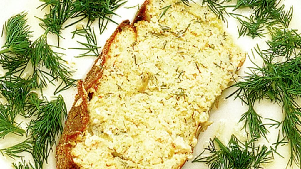 3. Kaada lohitaikina voideltuun ja leivitettyyn vuokaan. Ripottele päälle hieman korppujauhoja ja muutama voinokare. Paista 30-40 minuuttia 200-asteisessa uunissa. Kaada vanukkaan päälle hieman voisulaa ja ripottele päälle hienonnettua tilliä.