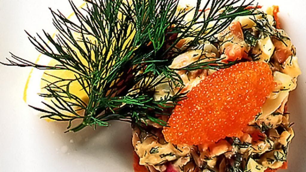 3. Paista leipäviipaleet voissa rapeiksi. Jaa tykkijunkkarin täyte lämpimille leiville. Nosta huipuksi reilu mätinokare ja koristele tillitupsuilla ja sitruunalohkoilla. Tarjoile heti.