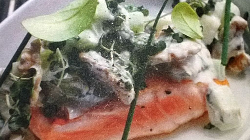 1. Mausta lohi suolalla ja pippurilla. Paista kala pannulla kullanruskeaksi kummaltakin puolelta. Älä paista liian kauan; kala saa jäädä sisältä tummanpunaiseksi.