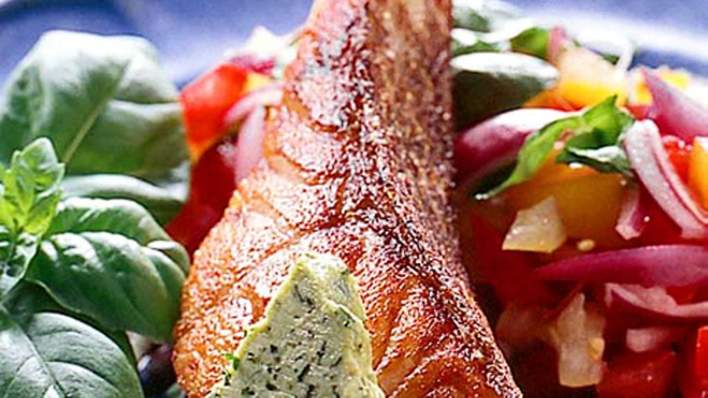 3. Penslaa lohikyljykset voisulalla tai öljyllä. Grillaa kuumalla hiilloksella n. 2 minuuttia molemmin puolin. Mausta suolalla ja pippurilla.