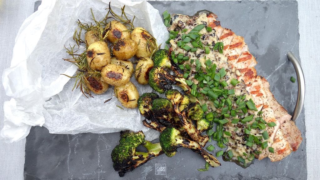 Kiehauta suola ja vesi kattilassa, jäähdytä. Putsaa porsaanfilee ja leikkaa pituussuunnassa kolmeen osaan. Kaada suolaliemi lihojen päälle ja anna maustua muutama tunti. Ota lihat liemestä, kuivaa talouspaperilla ja grillaa lihoja molemmilta puolilta kolme minuuttia.