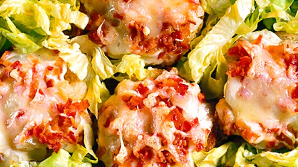 6. Laita leivät pellille, levitä päälle muhennosta ja pekonia, ripottele päälle juustoa ja gratinoi uunissa kunnes juusto on sulanut.