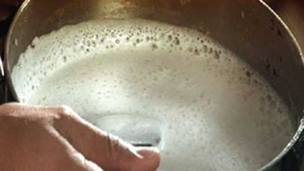 Hauduta miedolla lämmöllä 10-15 minuuttia. Lisää lopuksi sitruunamehu, tarkista maku.