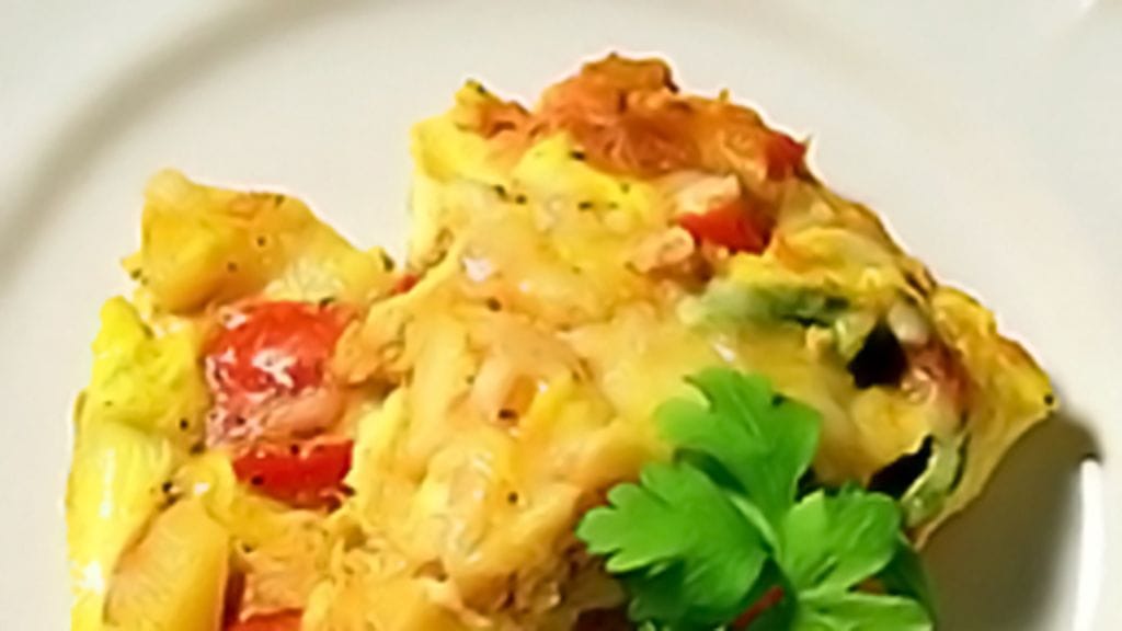 3. Alenna lämpöä ja laita kansi päälle. Anna munakkaan hyytyä 10 minuuttia. Sirottele pinnalle juustoraaste ja anna sen sulaa. Koristele lehtipersiljalla ennen tarjoilua.