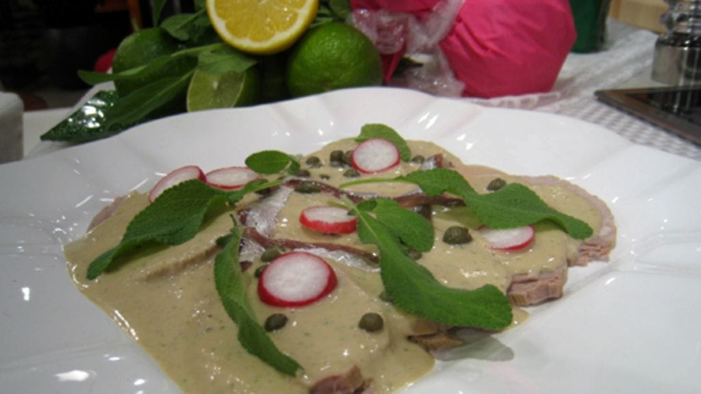 Keitä paistia hiljaisella tulella noin 1 tunti kunnes se on kypsää. Anna paistin jäähtyä omassa liemessään. noin tunnin verran. Nosta liha liemestä ja laita laakeaan astiaan. Laita paino päälle, jotta liha tiivistyy ja tulee kauniin muotoiseksi.